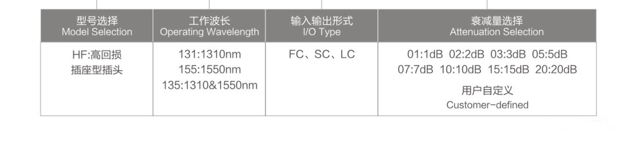 產品使用的是摻有金屬離子的衰減光纖制造成,能把光功率調整到所需要的水平。